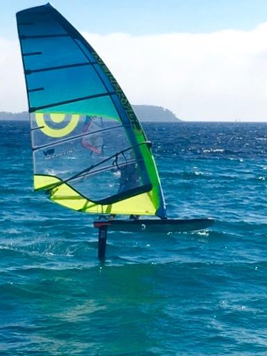 Un fois en vol, on avait l'habitude d'un F4 très instable sur le plan longitudinal, et curieusement bien moins cette fois. On n'a pas pour autant un ensemble pépère mais le flotteur calme réellement l'instabilité du foil. J'en vois certains arriver à toute allure .... : non, cela n'en fait absolument pas un foil pour débuter pour autant, mais c'est juste un peu plus agréable pour celui qui sait naviguer car cela permet de se concentrer un peu plus sur d'autres facteurs.