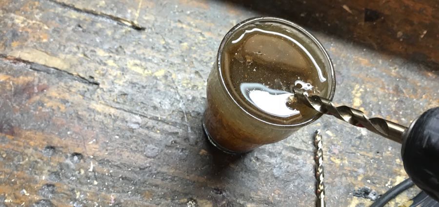 On enlève régulièrement la limaille d'inox pour ne pas bloquer le foret