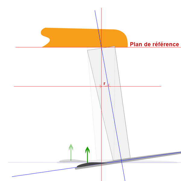 Le rake concerne la pente entre le plat de la carène, et le plan de référence du fuselage du foil. La plupart d'entre nous vissons notre foil sous la planche sans trop se poser de question,