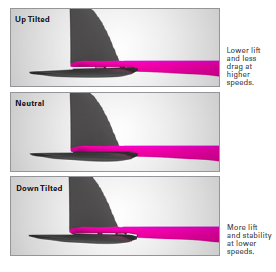 En rendant le stab plus piqueur, on augmente la portance du foil. C'est un réglage qui peut être intéressant dans des conditions de vent très léger, où on a du mal à rester en l'air ... ou pour améliorer les performances au près.