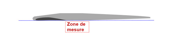 Tout d'abord, il est convient de repérer sur le fuselage du foil une zone plate qui semble alignée avec l'intrados de l'aile. Ce sera notre zone de mesure